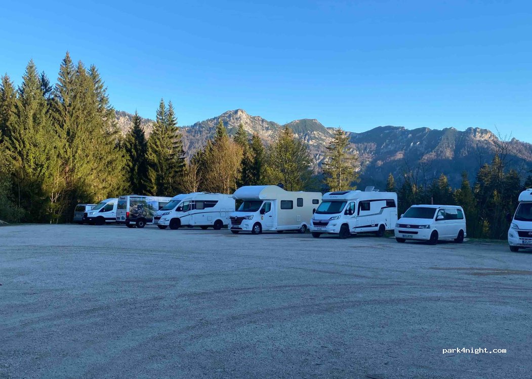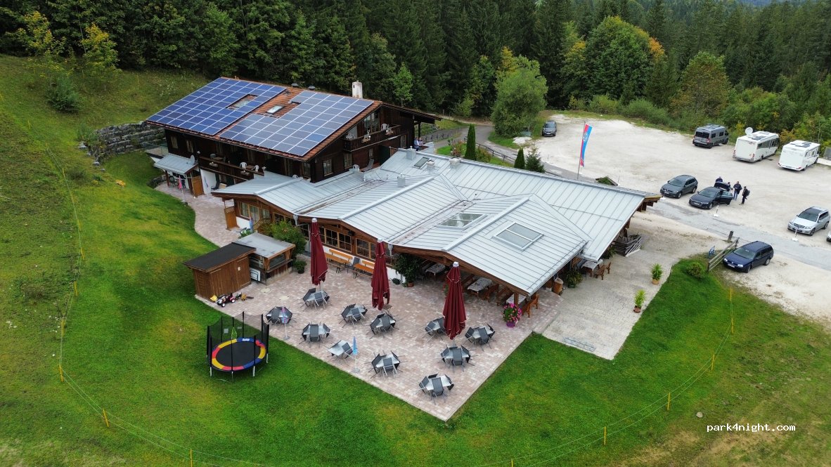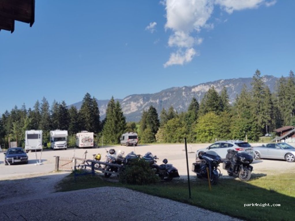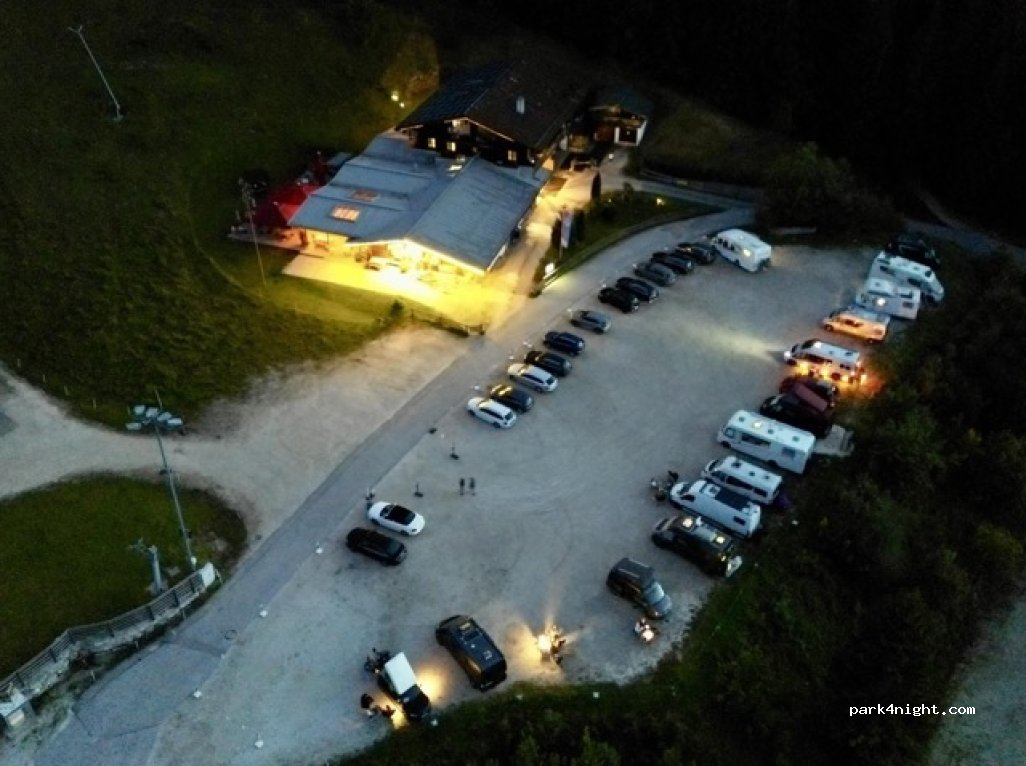 Ich muss mich leider den anderen Rezensionen anschließen. Der Parkplatz ist in Ordnung und man steht in einem herrlichen Bergpanorama. Allerdings ist der Wirt und das Servicepersonal (völlig gestresst) äußerst unfreundlich / patzig und man fühlt sich als Gast nicht unbedingt willkommen. Die 10 Euro Parkgebühren werden beim Verzehr angerechnet. Das Essen im Gasthaus ist sehr gut. Lob an die Küche.