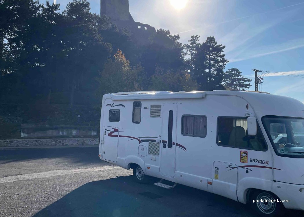 Endroit parfait pour passer la nuit avant ou après la visite du château. Magnifique vue et superbe coucher de soleil. Quelques passages de voitures le soir jusqu'à 22/23 heures sur le parking mais après c'était super. Les visiteurs viennent assez tôt le matin et le parking est vite plein.