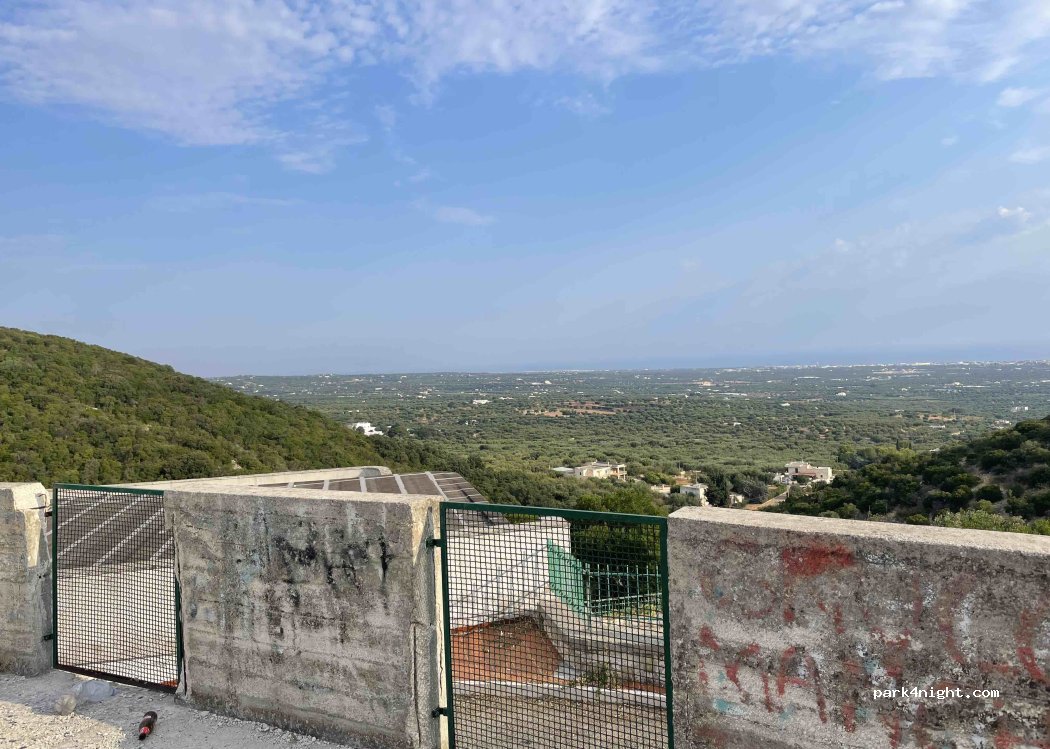 Punto panoramico sulla città di Monopoli dove passare la notte . Zona tranquilla nelle vicinanze c’è una fontana di acqua potabile all’incrocio nei pressi della statua della madonna . all’inizio della stradina che vi porta a questo parcheggio panoramico. Nelle vicinanze c’è una pizzeria/ristorante La Tavernetta.