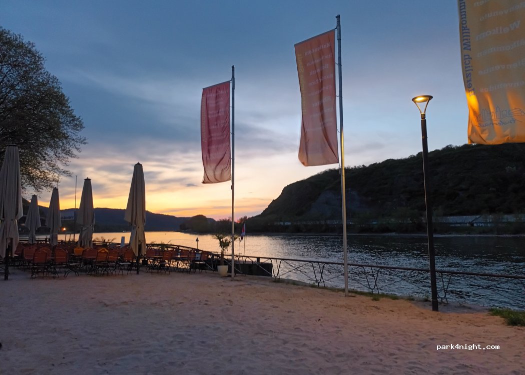 Nice little parking lot on the banks of the Rhine. We were able to park our 6.40 meter van there for one night. The parking lot is quiet but not as secluded as other parking lots nearby. From here you can start the tour by boat to the geyser. The Geyser Center is across the street.