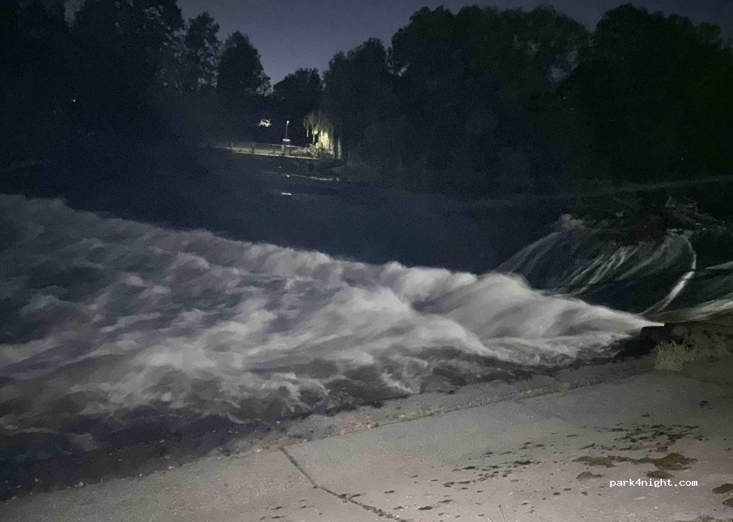 Nice and quiet (apart from fast moving water on the weir, which I found relaxing). Got there late and left early. Felt safe. There are toilets but no sign with opening hours.