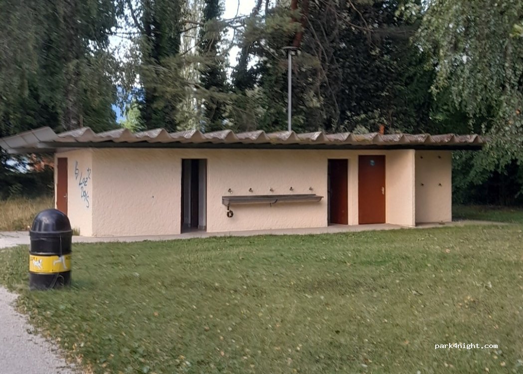 Kam abends an und habe die Toiletten nicht gefunden… War auch sehr dunkel und mir etwas unwohl. Etwas weiter gibt’s einen grossen Parkplatz (bei der Sportanlage), dort ging‘s dann.
