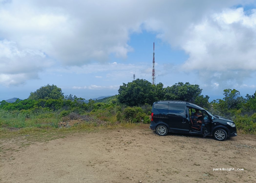 Belle plate forme pour 2 ou 3 vans (si bien garés). Point de vue exceptionnel sur le golf de Propriano. Très tranquille, aucun passage sur la petite route qui dessert seulement les antennes. Attention la route d’accès n’est pas large et très sinueuse, comptez bien 30 min depuis Ajaccio.