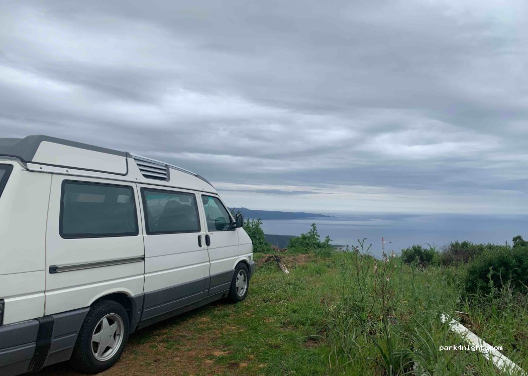 Magnifique spot avec vue panoramique et coucher de soleil sur la mer. Attention il est plutôt prisé, car en venant tôt début septembre nous étions déjà 3 sur le site (le maximum possible selon moi). L’endroit est super calme, personne ne passe sur la petite route, on s’y sent bien en sécurité.