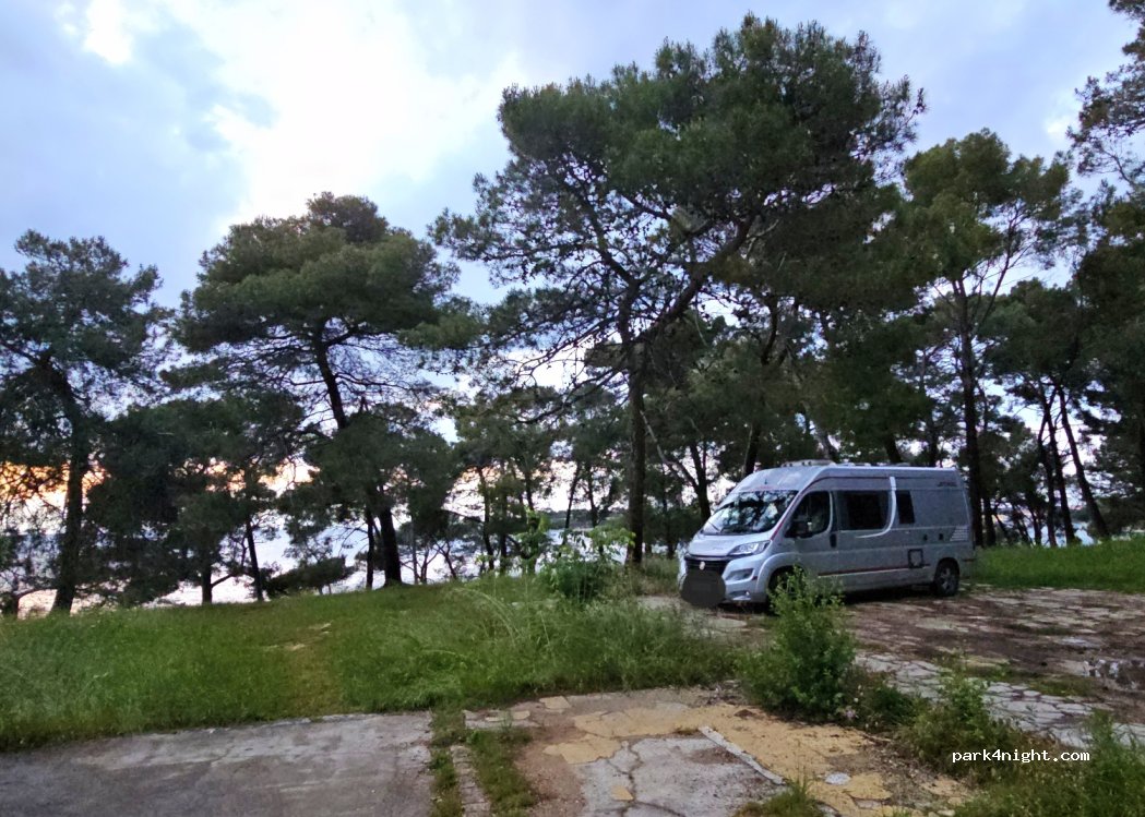 We stayed for 2 nights and were undisturbed. Nice little park up close to the sea and a short walk from Poreč. The last bit of the road in is a little bit tricky because of an overhanging tree, we were just about fine in our 2.8m high van but could be hard for taller vans.