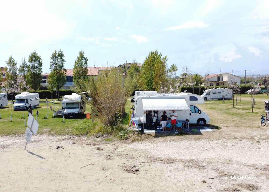 Tranquille pour la nuit sans bruit ... des emplacements très corrects en espace, eau et électricité sur chacun... Accès direct à la plage, superbe ... Le bémol comme toujours en Italie (ou presque) c'est les sanitaires vétustes et payants ...0.50€ la minute pour de l'eau, froide ou chaude.