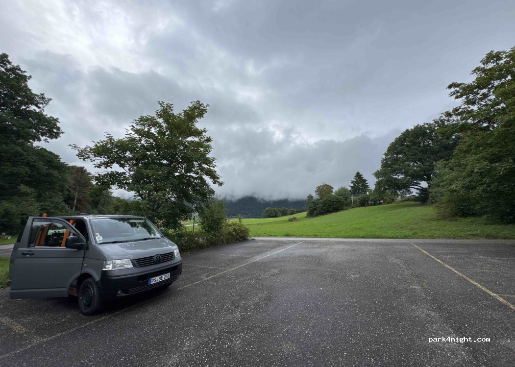 Ruhiger Parkplatz am Waldrand, schöne Aussicht aufs Land. Ein weiterer Van hat auch hier geparkt. Einige freundliche Spaziergänger liefen vorbei. Wir brauchten keinen Keil, grösstenteils eben. Twannbachschlucht in 5 minütiger Fahrt erreichbar - sehr zu empfehlen.