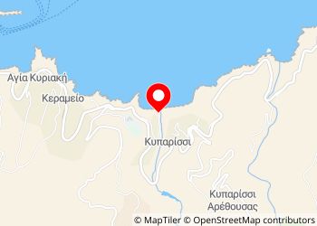 Right next to the Kyparissi beach bar. In the shade under the bamboo, in a quiet area, a good spot to land on the beach. Not many people during the day when we were there, and no one at night (June 2021). the beach bar had not yet reopened, so it might be a good idea, but the area is very nice, with a shower on the beach.