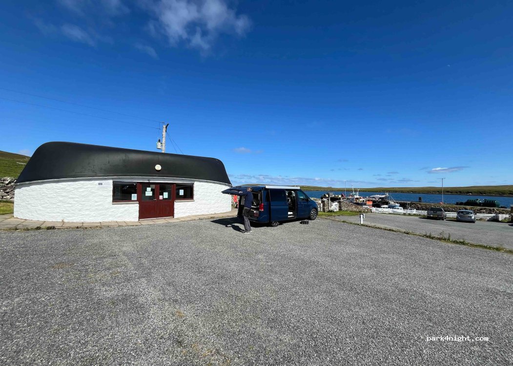 Overnight price is £20 but don’t let that put you off. This is an excellent place to stay. Clean and comfy facilities, wee Kirchen with microwave, toaster and kettle. Cloth Washing and drying facilities. Some spots slopes so chocks may be needed. Nice view overlooking the small harbour. Lovely and quiet.