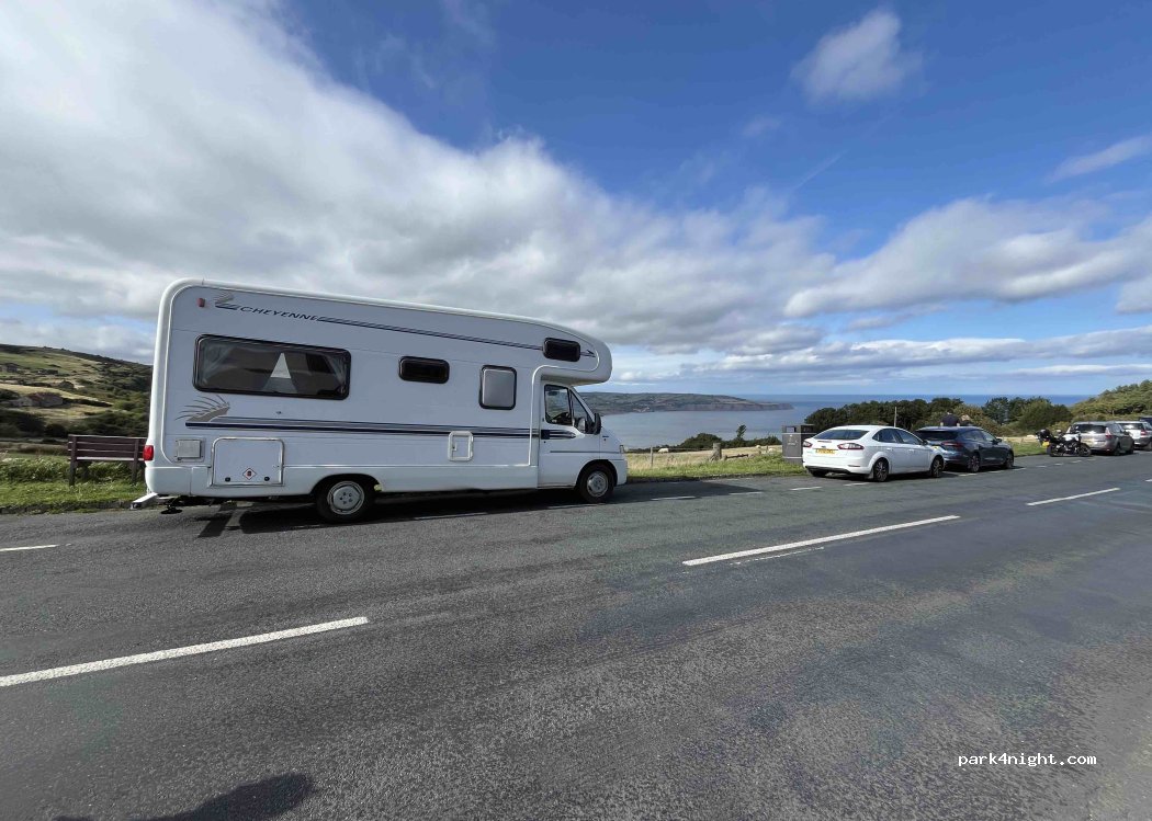 A hidden gem! Yes the road is steep. But there’s little traffic, it’s free, there are toilets and bins, there’s a cafe near by and best of all, the views are stunning! One warning though, if the forecast is windy, DO NOT STAY if you’re afraid of the van being rocked as it’s quite open to the elements. But overall it’s fantastic.