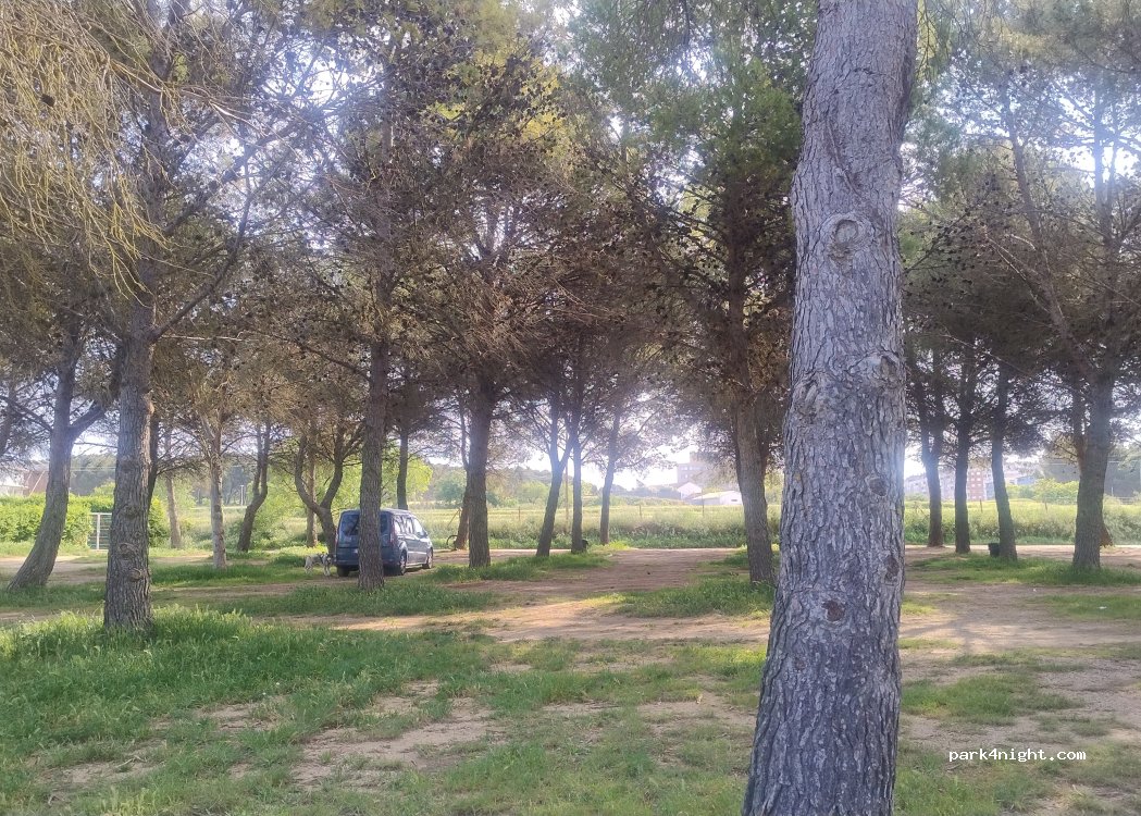 Buen lugar para descansar bajo la sobra del pinar, junto al supermercado Alcampo. Algo ruidoso al amanecer por el intenso tráfico de vehículos pero se agradece mucho que permitan estacionar en una zona natural y con sombra.
