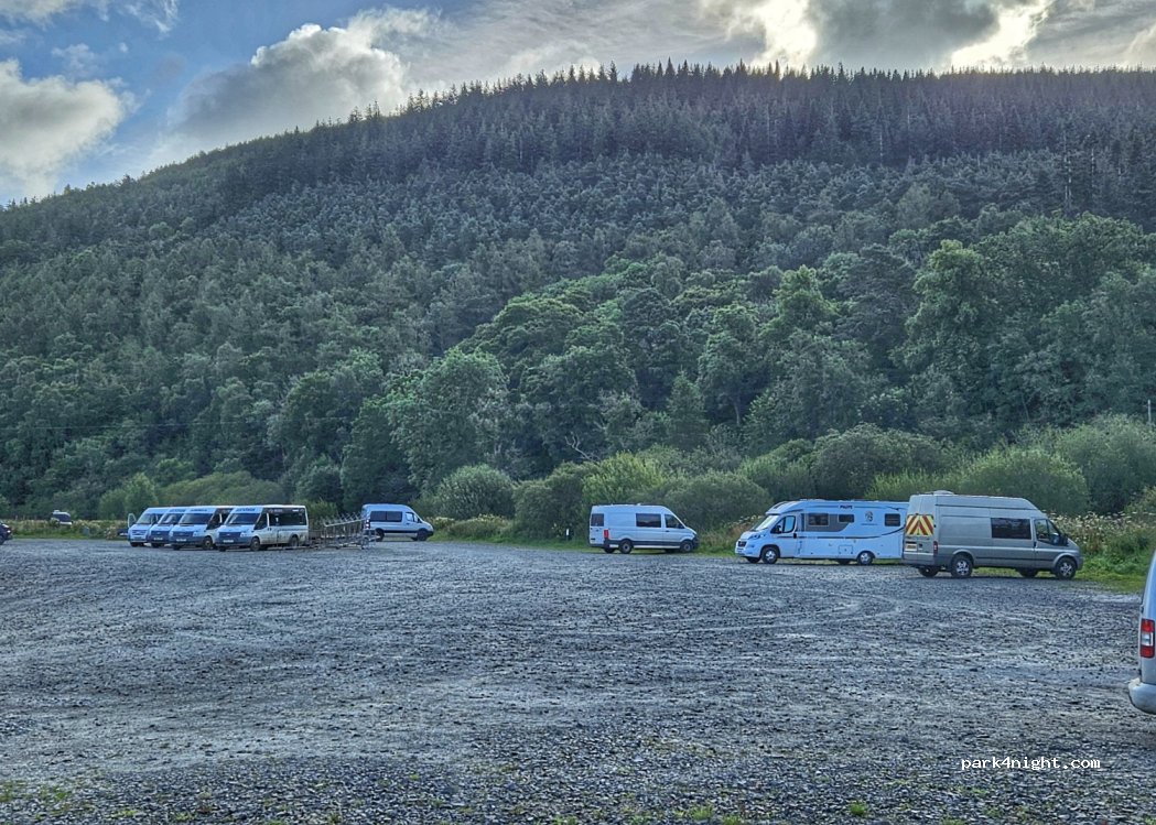 Stayed here very quiet just walkers, lots of signs to stay over night pay at machine or by Ringo app £12 plenty walks and the town 10 minutes to walk lovely coffee shops, it wasn’t busy lots mountain bikers in the area car parking could do with resurfacing big pot holes but ok for the night a bit of rubbish left by people so we did a litter pick no bins till after the bridge on your left