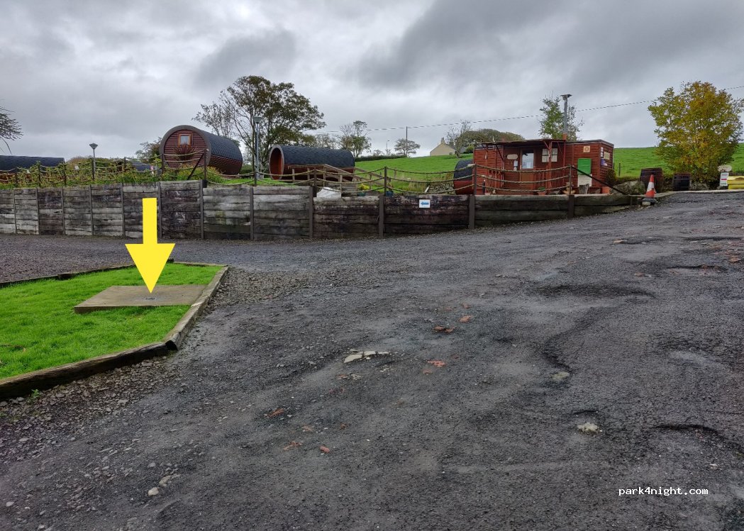 Accueil très peu aimable. Horaires d'arrivée impérativement entre 15h et 17h. 22 £ pour un simple emplacement sur gravier, même pas séparé des voisins 4 £ si on veut de l'électricité. La vidange des eaux usées est au bord d'un virage d'une voie très en pente. Inutilisable si le camping-car a un porte-à-faux arrière long ou si la vidange n'est pas derrière l'essieu.