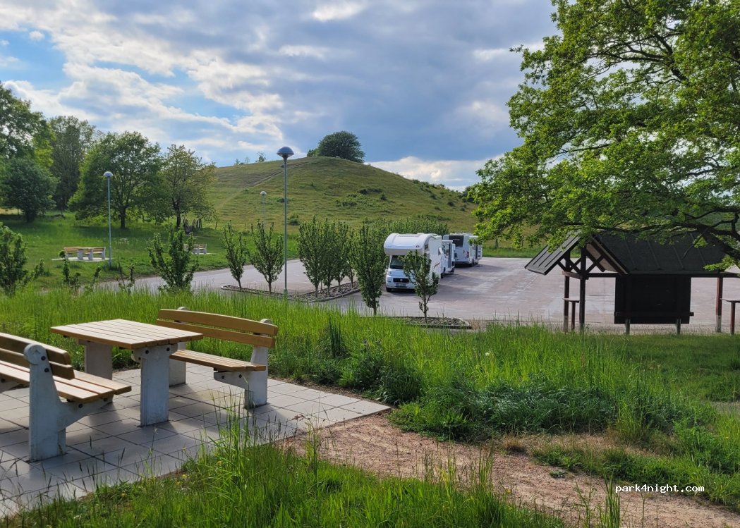 Ein großer Parkplatz mit der Möglichkeit, die Campingtoilette zu entleeren. Das vorhandene Wasser ist kein Trinkwasser! Zudem gibt es Picknicktische und Bänke.