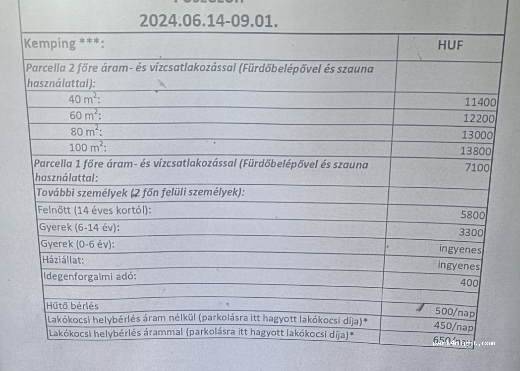 Pasamos dos noches por 27€/noche (2 personas y un perro) con electricidad y agua en la parcela y entrada libre al spa incluida. Nos hubiéramos quedado más días pero llegaron 10 caravanas inglesas haciendo mucho ruido y decidimos irnos. Usamos la lavadora sin problemas (1000 HUF/lavado). No tienen secadora pero sí tendederos. Las personas de la recepción fueron súper amables.