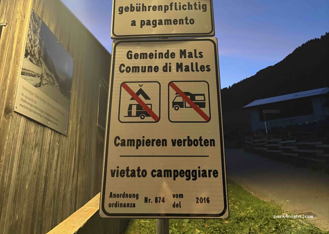 Luogo MERAVIGLIOSO! Tranquillo e per niente turistico. 6€ e la notte non si paga. tranquillo e ideale per passeggiate splendide nella val venosta. Nessun servizio, ma ottimo per scappare dai turisti che ci sono in agosto. C'eravamo solo noi e un altro camper