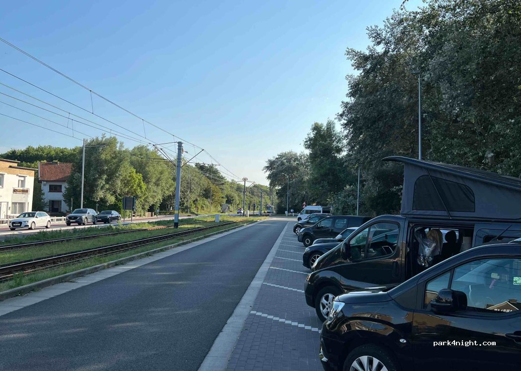 Waren hier 2 Nächte. Parkplatzlänge war ideal für unser Womo mit 6,31m Länge. Man stand weder auf der Straße noch auf dem Gehweg. Am Wochenende ist nicht so viel Verkehr, die Tram ist ziemlich leise. Haben sie irgendwann gar nicht mehr wahrgenommen. Montagmorgen war viel Autoverkehr.