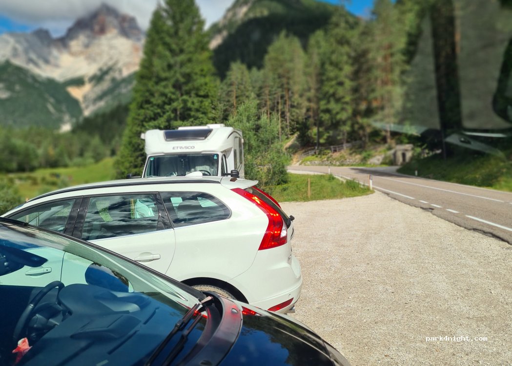 We didn't stay overnight, just to eat. Please park normally. An 8 meter motorhome can easily reverse in to an parking spot and not be on the road. Some German campers are parking sideways and taking 4-5 parking spots from the local hikers. See on of the last images. This is the reason why campers get banned from everywhere.