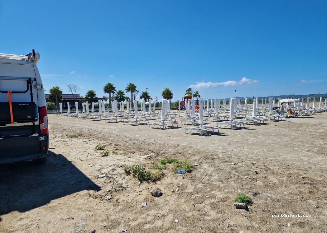 Parking itself is pretty good, it costs 10euro to stay overnight, toilets and beach showers are available. Very little garbage.