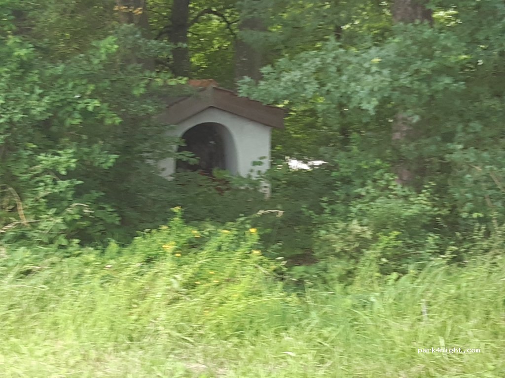 Mooie parkeerplaats voor wandelaars een beetje van een kleine weg in het bos. Zeer rustig en geschikt voor overnachtingen. Kleine kapel in het bos.