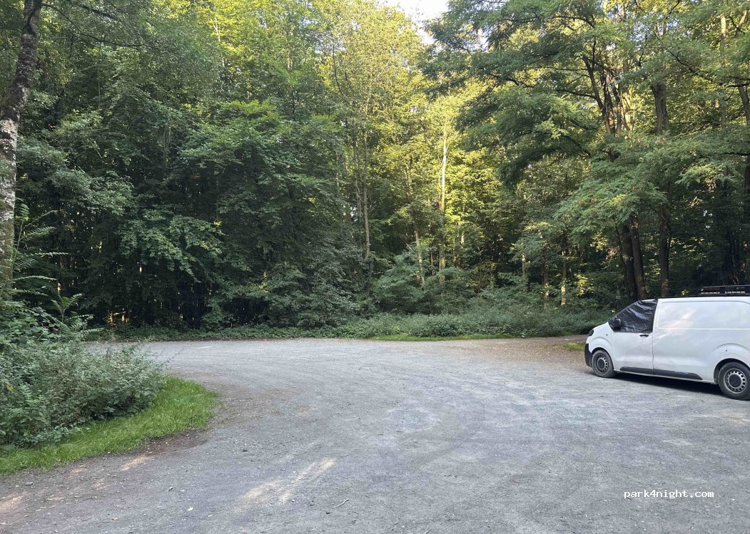 Parking forestier simple, très calme avec quelques petits sentiers de randonnée pour une pause plus longue.