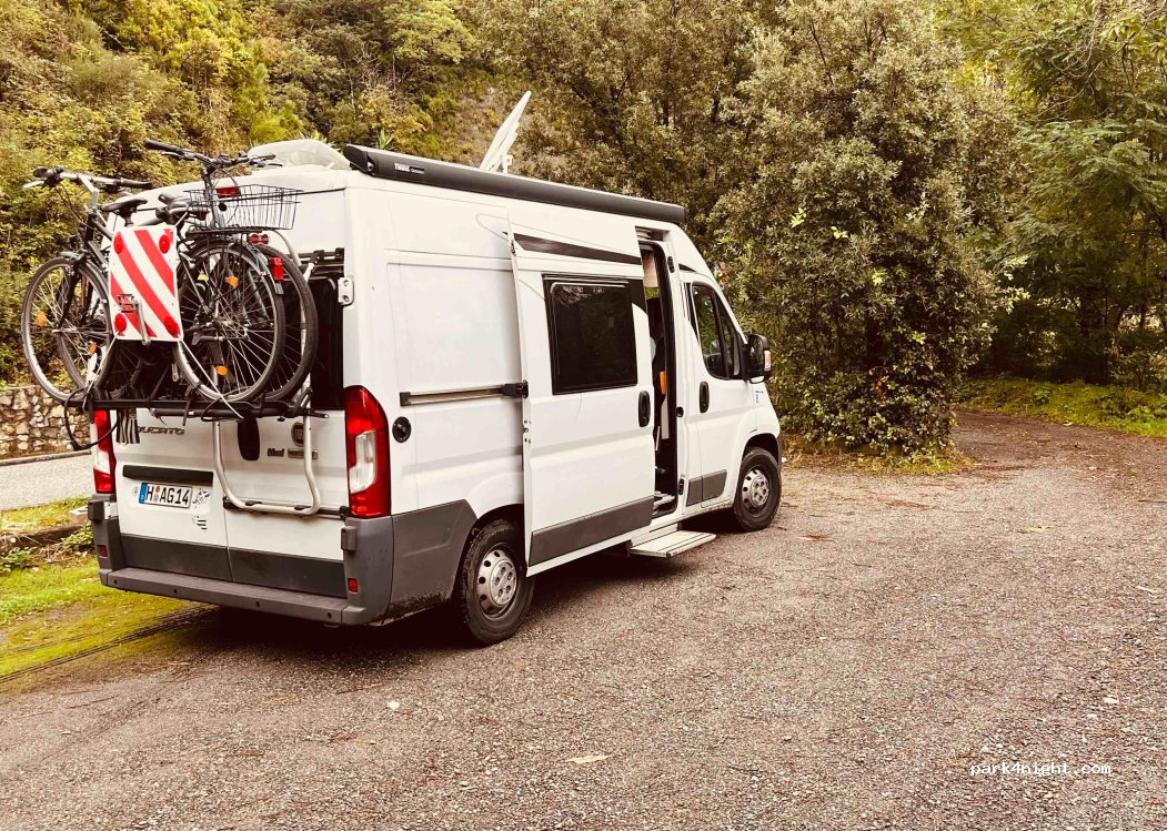Hatten eine sehr entspannte und ruhige Nacht. Auch morgens lange schattig, vermutlich auch mit größerem Camper (als T5) möglich. Die Straße hört man kaum und ist nachts nicht besonders frequentiert. Leider wird hier relativ viel uriniert, das riecht teilweise sehr stark… :)