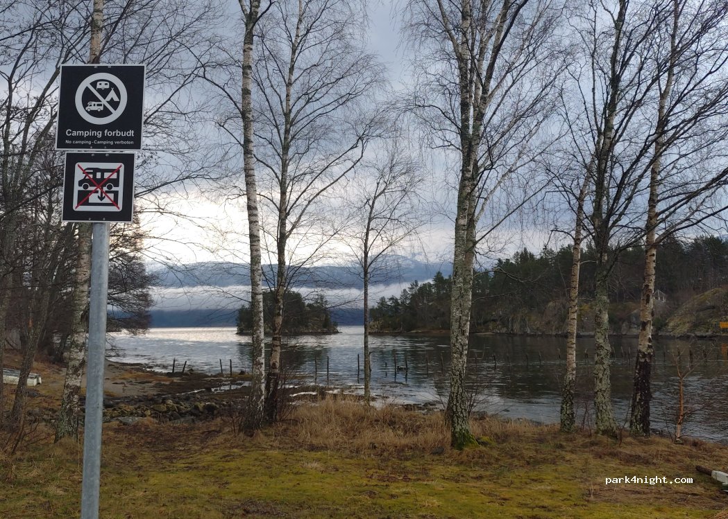 Nous nous y sommes arrêtés pour déjeuner après y avoir dormi il y a 5 ans. Pour nous aucune interdiction d'y passer la nuit.... Seul un panneau No Camping mais qui semble s'adresser à la petite scierie près du fjord