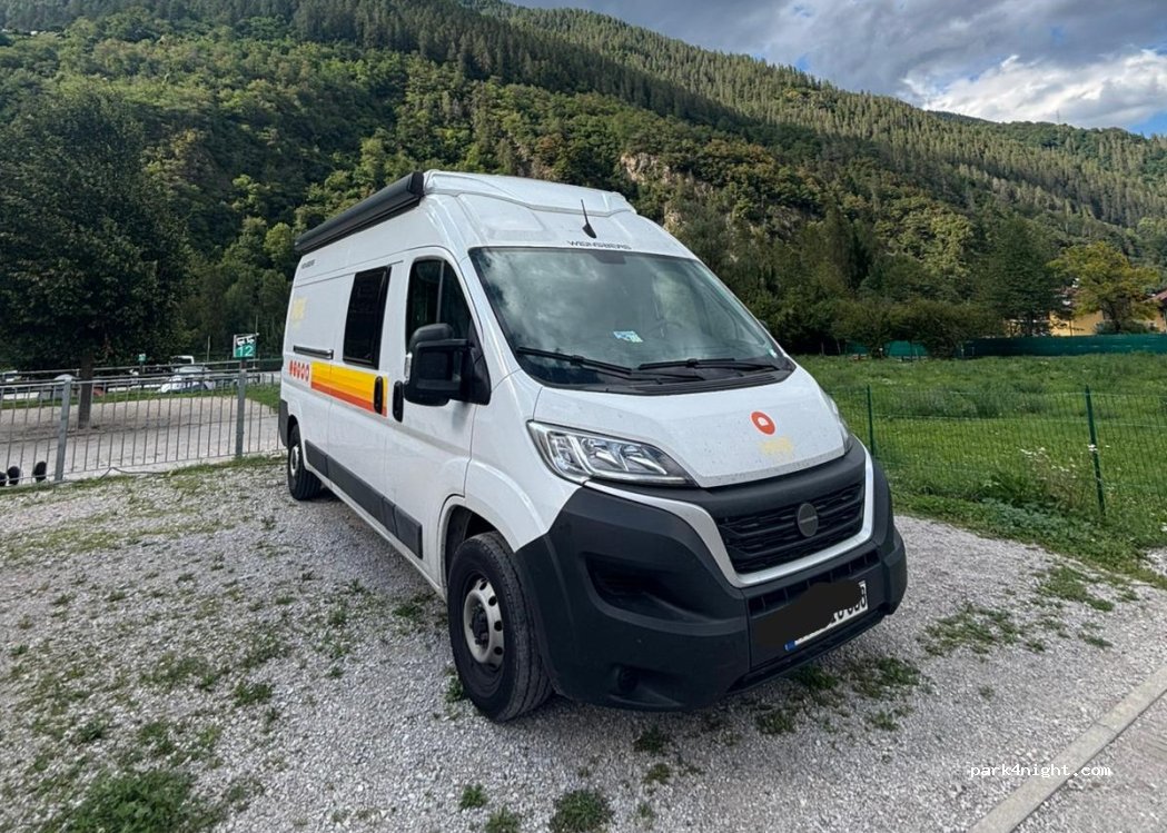 Siamo rimasti 2 notti,ogni piazzola ha allaccio corrente,bagni molto puliti e docce calde gratuite,lavatrice disponibile a pagamento. carico/scarico compreso nel prezzo anche se un po’ scomodo. consigliato per fare rafting.notte silenziosa. prende poco Internet