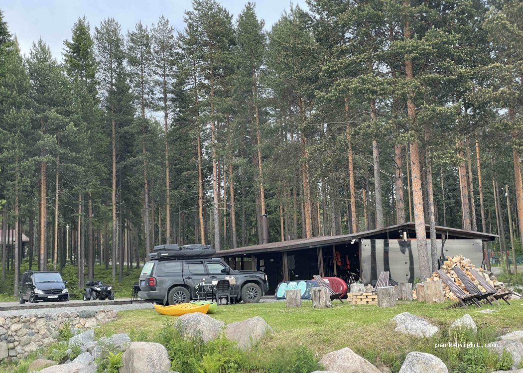 完美的营地 进来的路有些不好走,就在湖边,风景非常漂亮,很安静。设施齐全,可以加水充电,WiFi 好用,洗碗洗漱都有热水,卫生间很干净,打扫及时。游玩项目很多,自行车、SUP等等,开船出去钓鱼需要提前预约,老板Роман友好健谈,给我们看了很多漂亮的照片,回来的时候还会来这里。