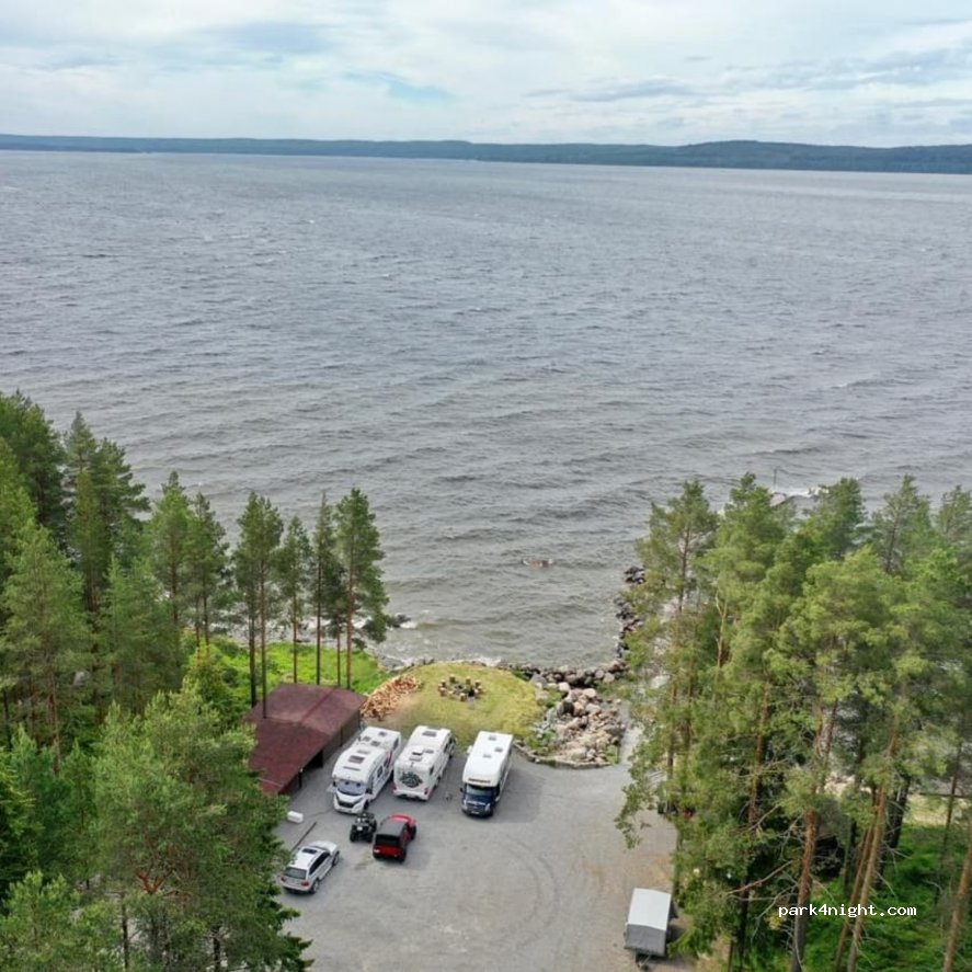 Stellplatz direkt am See. Wunderschöne Aussicht. Es ist erlaubt mit dem gestapeltem Holz Feuer zu machen. Die Übernachtung kostet 1500 Rubel. Strom, Wasser, WiFi, Feuer, WC sind inklusive. Der kurzer Weg zum See ist schlecht. Hier ein Stern Abzug.