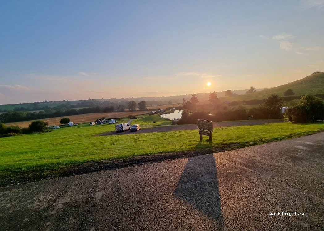 Nice and quiet campsite in multiple layers. We paid £21 for one night in a large camper (hook-up available, although we didn't use it), 2 adults, 1 infant and the additional £1 was for bringing our dog and is donated to the Dog's Trust. The campsite has clean facilities in a small building opposite the pond. It can get a bit windy when parked up top but the view is great!