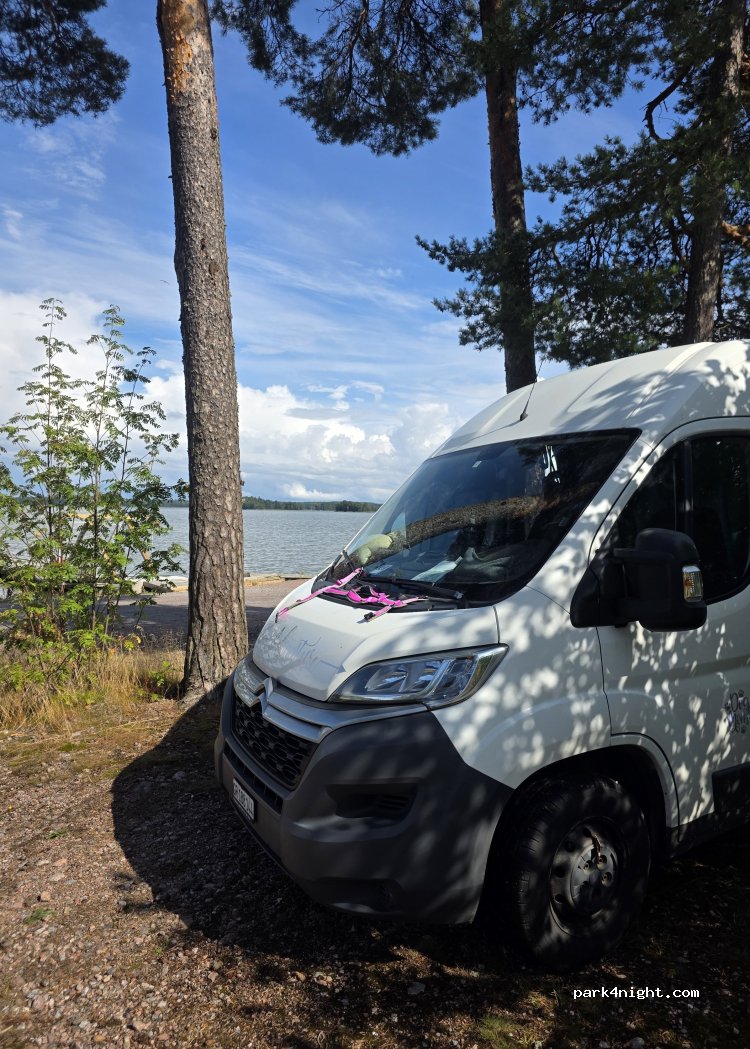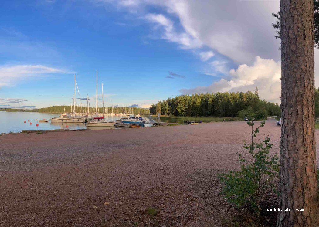 The road was horribly loud all night long, at least on this summer weekend night. Otherwise a decent place with nice views over the bay. Plenty of space but make sure not to block the area near where boats are launched/raised, cars with trailers need to manouver there.
