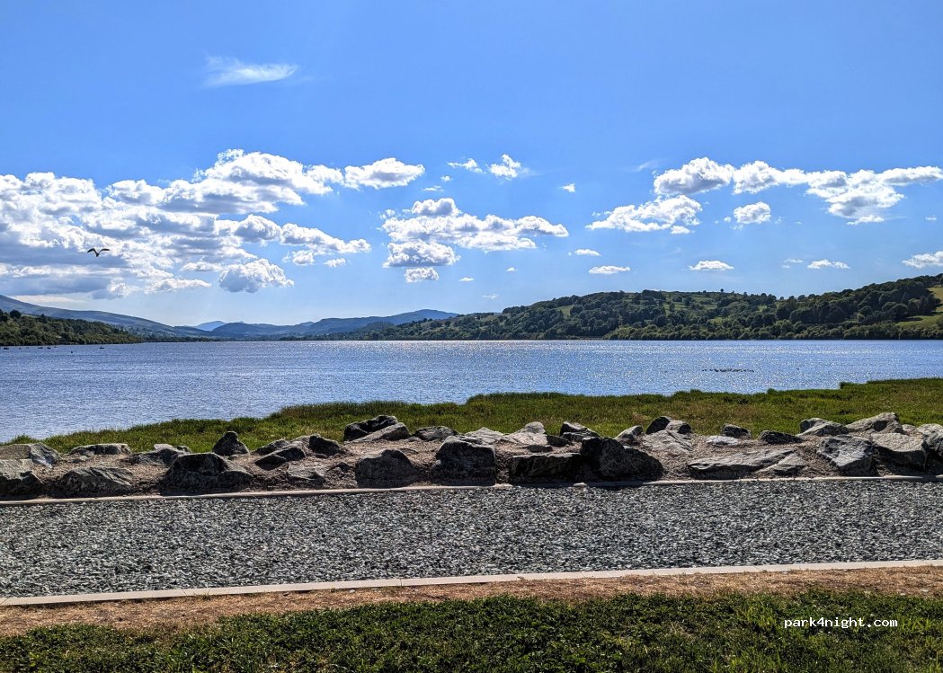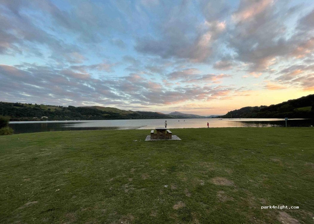 Paid lake car park. Grass area with picnic benches. Overnight camping is not allowed.