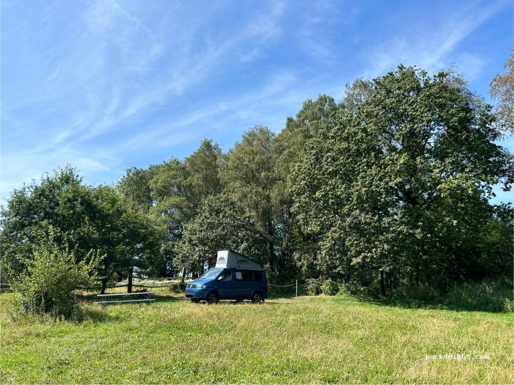 Nous vous offrons la possibilité de passer la nuit en tant qu'invité indépendant sur une grande prairie naturelle derrière la grange avec accès direct à la forêt.