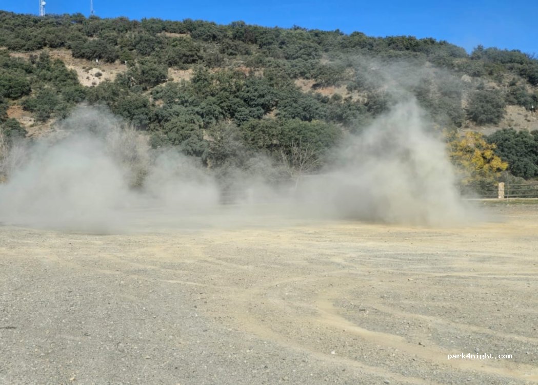 Domingo 14h. Estábamos tranquilamente almorzando cuando entró un joven ha hacer derrapadas con su coche, lanzando a nuestra camper piedrecillas del terreno.