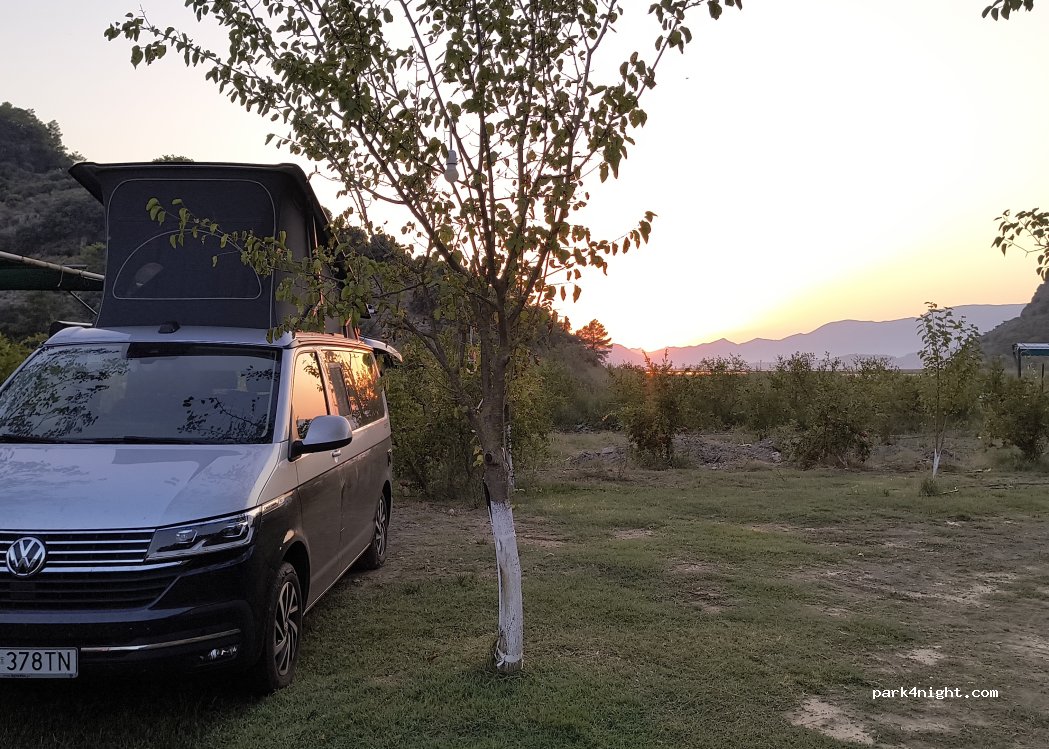 Please note, there are two entrances: one also for taller motorhomes (closes at 5pm!), the other always open but with a height limit of around 2.60m due to low-hanging vines on metal frames.