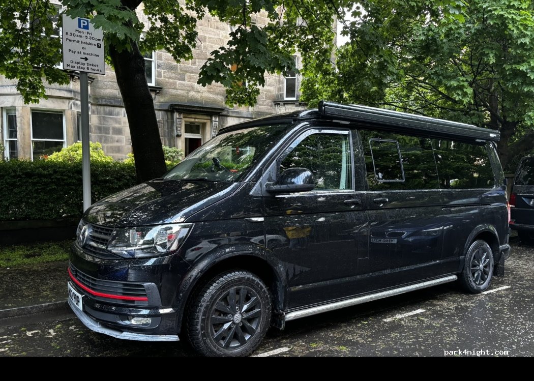 Found ourselves in Edinburgh unplanned and during the Fringe when all campsites were booked. Convenient to walk into the centre, and we found a space for our small camper. We moved to a side road off the terrace at night when there was space as we didn't feel entirely comfortable with sleeping there and felt less conspicuous. Survived the night without trouble. Toilets only open 10-6, though.