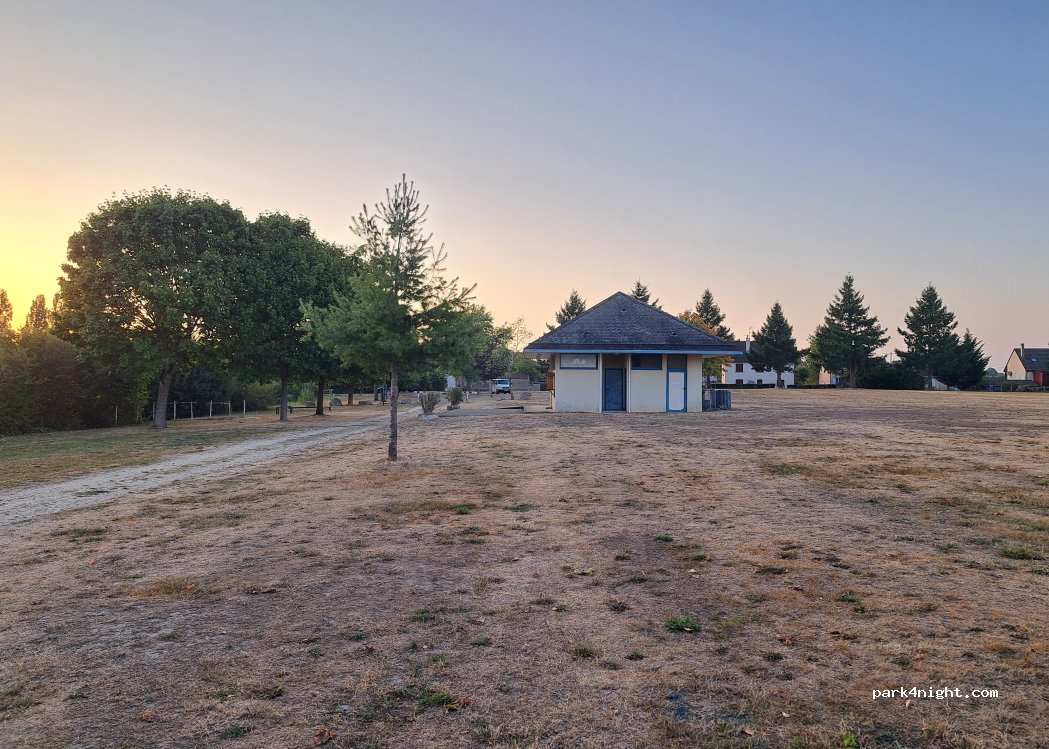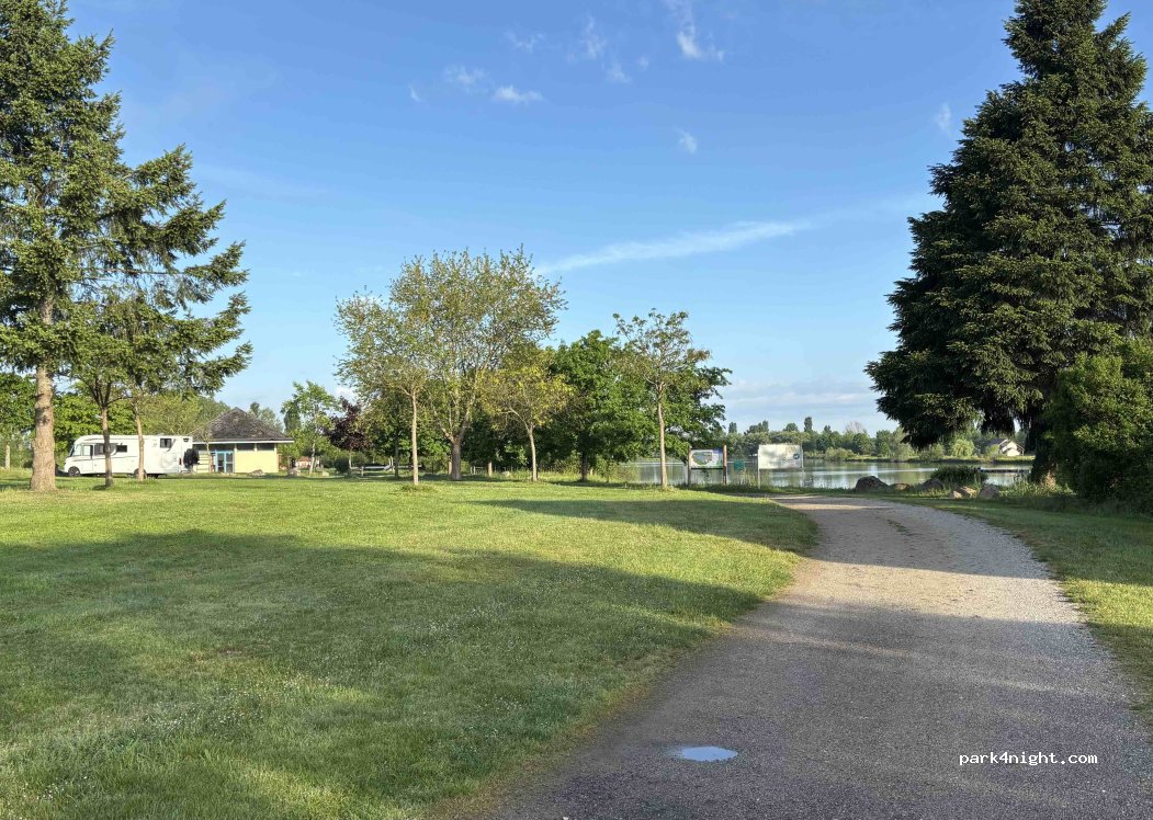 Très grand parking sur herbe avec arbres face à un lac ! Toilettes public, poubelles ! Endroit très calme et agréable ! Possibilité de pêche !