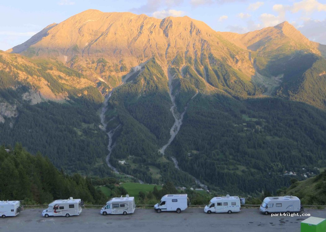 Belle vue sur les montagnes. Seul sur le parking les 6 et 7 septembre. Encore quelques commerces ouverts (restaurant, boucherie). Les parkings de la station sont gratuits du 1 mai au 30 novembre.