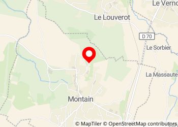 Entre l’église et le cimetières, sur le haut de Montain, un espace pour 3 CC. Un lieu calme.