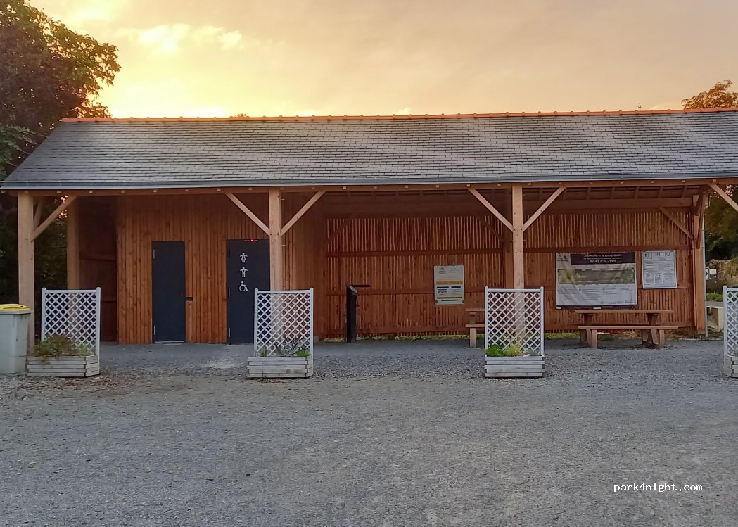 Le parking est spacieux,et a été aménagé, une halle couverte à été installée au dessus des tables pique nique, les WC sont autonettoyants. Calme et agréable.