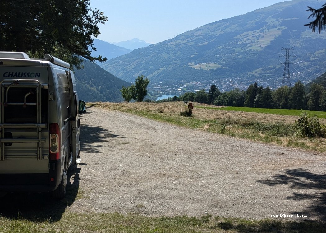 Endroit idéal au dessus de bourg saint maurice. Point d’eau ainsi que table de pique nique. On a passé 2 soirées dont une avec des gens venus faire une soirée mais rien de dérangeant . Place pour 2 camions à plat