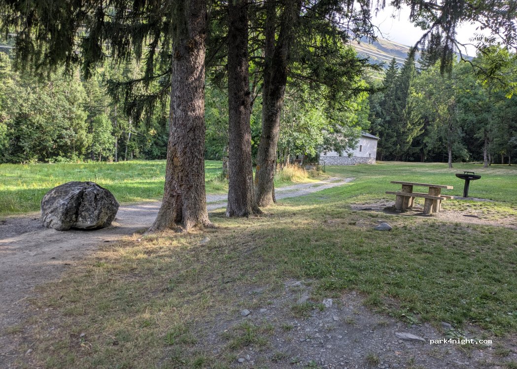 endroit parfait, superbe vue. tranquille. nous y avons passé la nuit. on entend légèrement le torrent. fontaine,stable de pique nique, barbecue à dispo propre. A 20min à pied de Seez, boulangerie, boucherie, épicerie.
