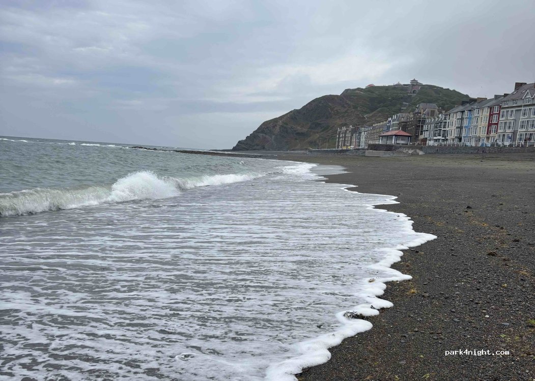 Arrived 17:00 on a sunny Monday evening and there were no spaces so we sat in the van on the other side of the road outside the student halls of residence ( can't actually park that side at all til 18:00) and waited. By 17:30 we had a space - perfect. We had a fun evening out in Aber and a great night's sleep.