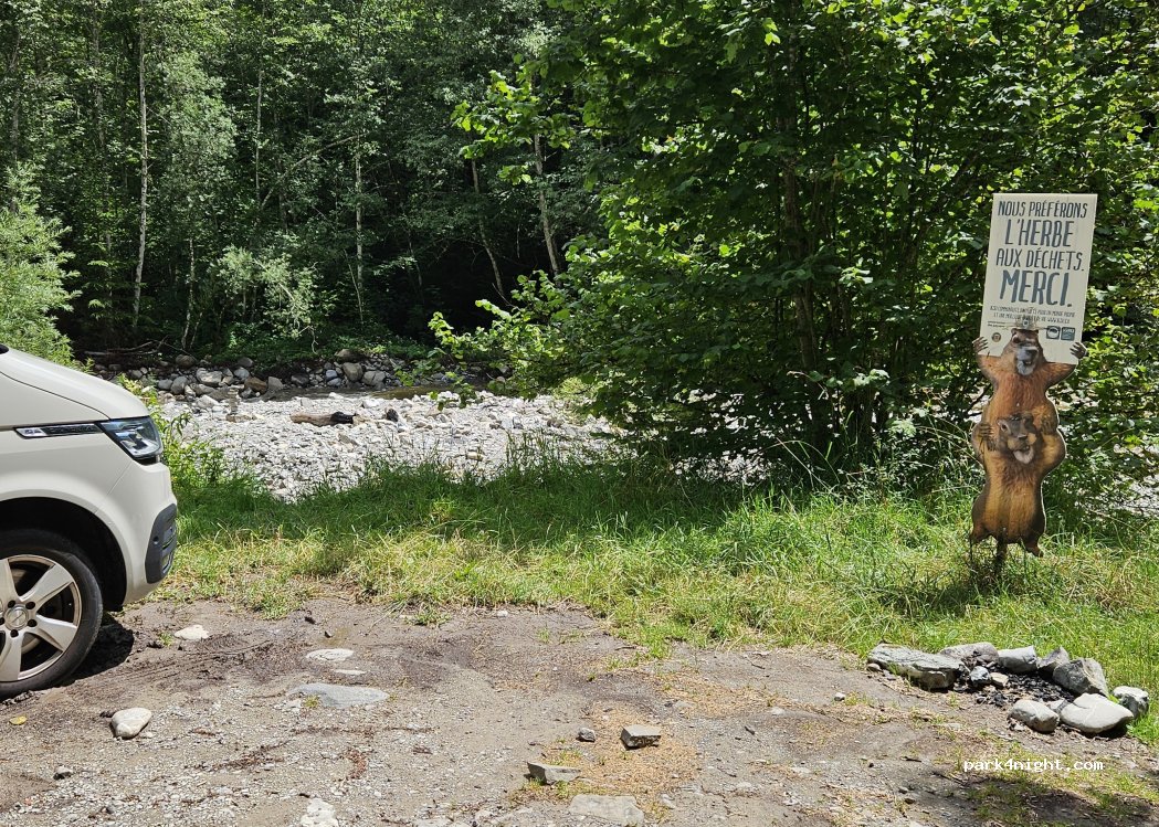 emplacement pour un fourgon ou camping car . nous avons passer une nuit très agréable en bord de rivière. pour y accéder chemin en pierre, n'hésitez pas à continuer un peu plus loin avec des spots bien ombragés. je recommande.