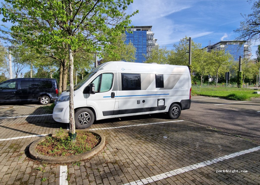 Der Platz ist nicht mehr gebührenfrei,Parken ohne ÖPNV kostet 7,50€/24h. Parklücken max 6,50m lang. Solche Plätze gibt es viele.In Freiburg hat man weiter gedacht und bietet für 9,50€ das Parkticket und die Tageskarte für Tram für 2 Erwachsene+4 Kinder an. Das ist eine perfekte Lösung,danke an die Stadt dafür! Am Platz fährt Linie 3 bis Bertholdsbrunnen, dann ist man direkt in der Altstadt.