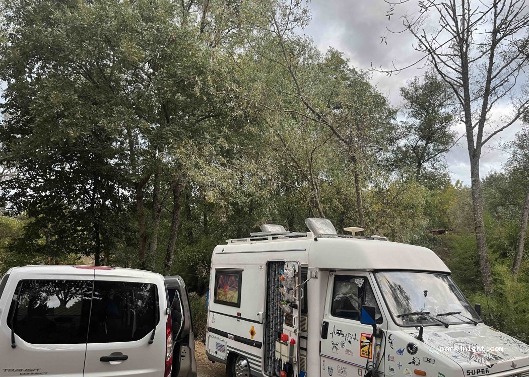 lovely little camp with good facilities and friendly staff. served us well as we were looking for shade in the 30 heat & we could use the public pools just next door which were really nice discounted for campers €2 for 2 over 65. Only downside was the sticky honeydew continually misting down from the trees where we parked. This is probably only a short term issue. Great value €11 pn no electric