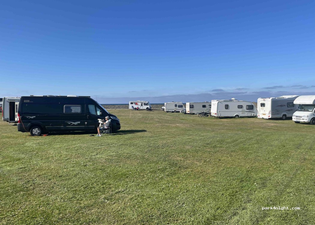 Lovely wee spot close to local shop and decent hotel/bar within small fishing town. Very reasonable pricing and welcoming hosts. Toilet left open 24/7. EHU available but connections are on the main building you will need a long cable or have to park close to building. If you park close to the beach area there is a strong smell of seaweed at low tide.