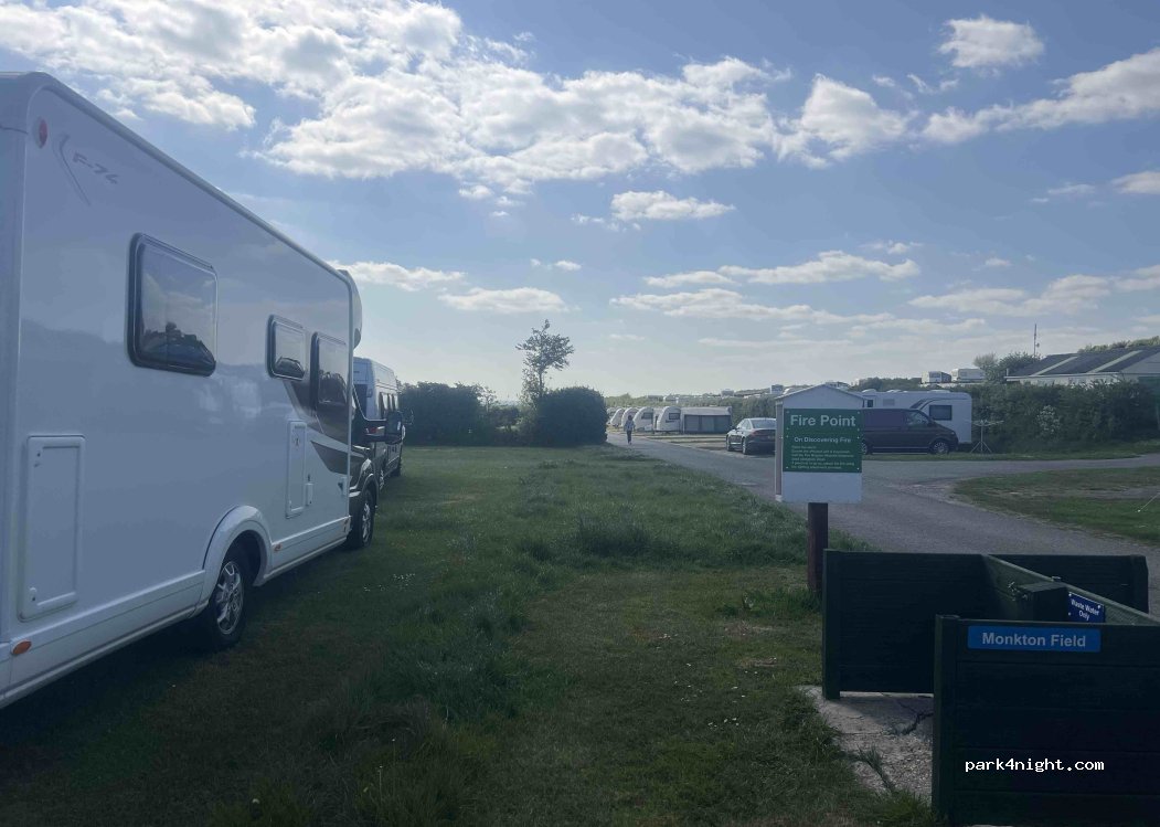 nice campsite with everything you need (small shop, washing machines, tumble dryer) and enough space for everybody. reception is open quite long (8 pm in august) - much better compared to the other campsites nearby. 39gbp for RV, 2 adults 1 child and electricity. recommended.