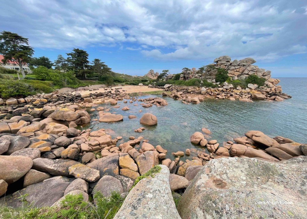 Parking pas loin du sentier pour voir les Granits Roses, accueille les CC et Van la journée. Il est bien placé c'est top !